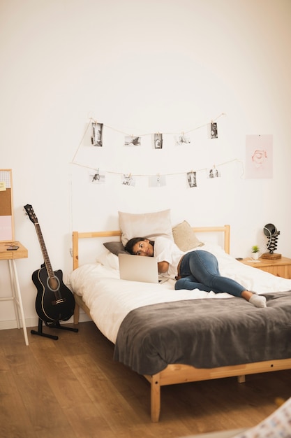 - Расставьте мебель таким образом, чтобы не загромождать комнату: чтобы спальня выглядела просторной, необходимо аккуратно расставить мебель. Разместите кровать у стены, чтобы освободить центральное пространство. Также стоит избегать больших и массивных предметов мебели, чтобы не создавать ощущение перегруженности.