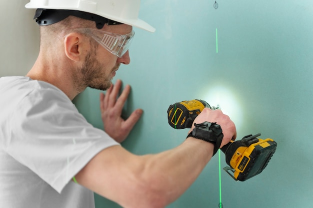- Использование лазерного уровня. Лазерный уровень позволяет точно определить отклонения поверхности на горизонтальной и вертикальной плоскостях. Перенесите отметки с помощью лазерного луча на стену и проведите анализ.