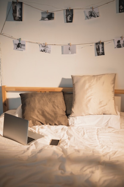 Чтобы создать гармоничный образ, можно расположить фотографии в определенном порядке. Например, можно использовать рамки одинакового цвета или формы, чтобы создать единую композицию. Также можно дополнить фотографии различными декоративными элементами, как например, осветительные приборы или нежные гирлянды. Главное — не перегружать пространство, особенно если спальня небольшая.
