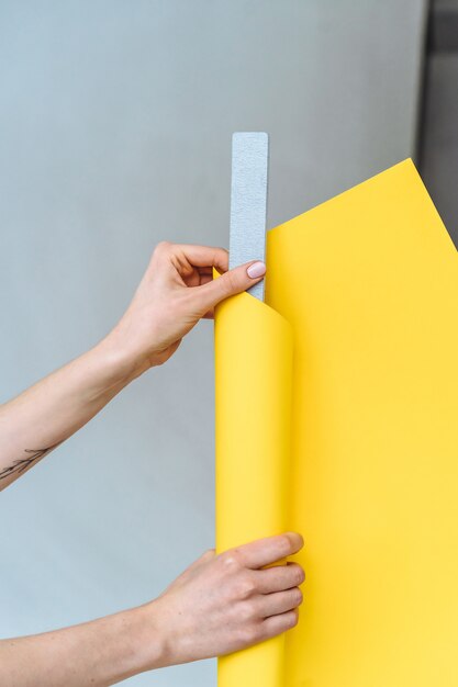 Однако будьте осторожны при корректировке положения обоев, так как они могут испачкаться лишним клеем. Чтобы предотвратить это, рекомендуется использовать защитные перчатки или отрезать небольшой кусок влажной тряпки, который можно использовать для удаления излишков клея.