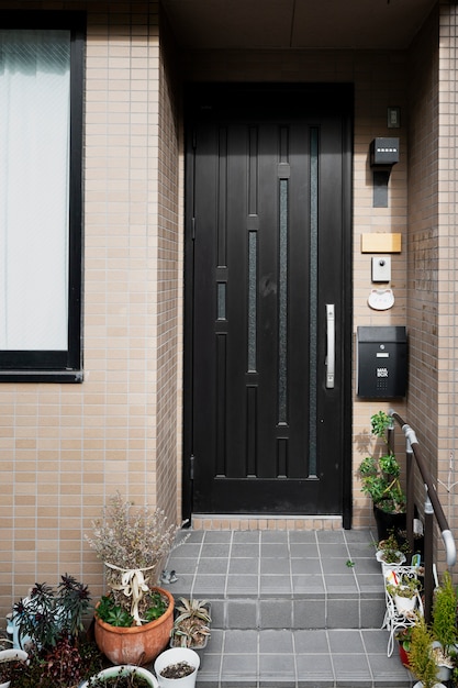 Цвет двери также является важным фактором. Он может быть согласован с цветом окон или фасада вашего дома. Также цвет двери может обращать на себя внимание и стать главным центральным акцентом на фоне нейтрального фасада.